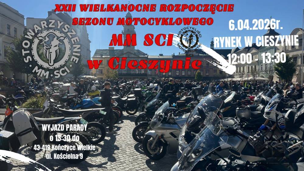 06.04.2026 r. Stowarzyszenie MM SCI oraz grupa Motocykliści i Motocyklistki SCI zapraszają na XXII Wielkanocne Rozpoczęcie Sezonu Motocyklowego MM SCI w Cieszynie.